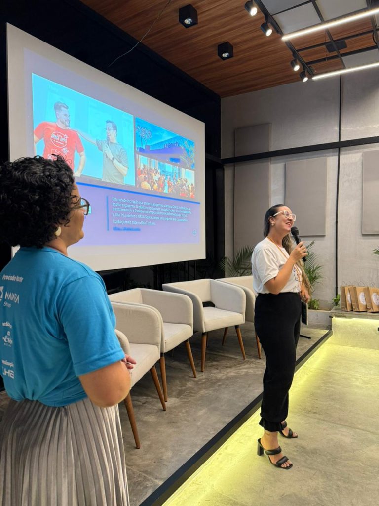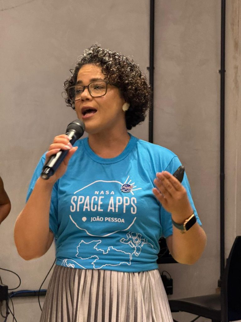 Dani explicou que o Space Apps Challenge é um programa de inovação e engajamento público da diretoria de missões científicas da NASA, criado em 2012. Em 2024, o evento registrou 93 mil participantes em 163 países, com quase 10 mil projetos submetidos. O Brasil se manteve no Top 5 de países com mais participantes e teve três equipes entre as dez melhores do mundo, sendo uma delas nordestina, de Maceió (AL).